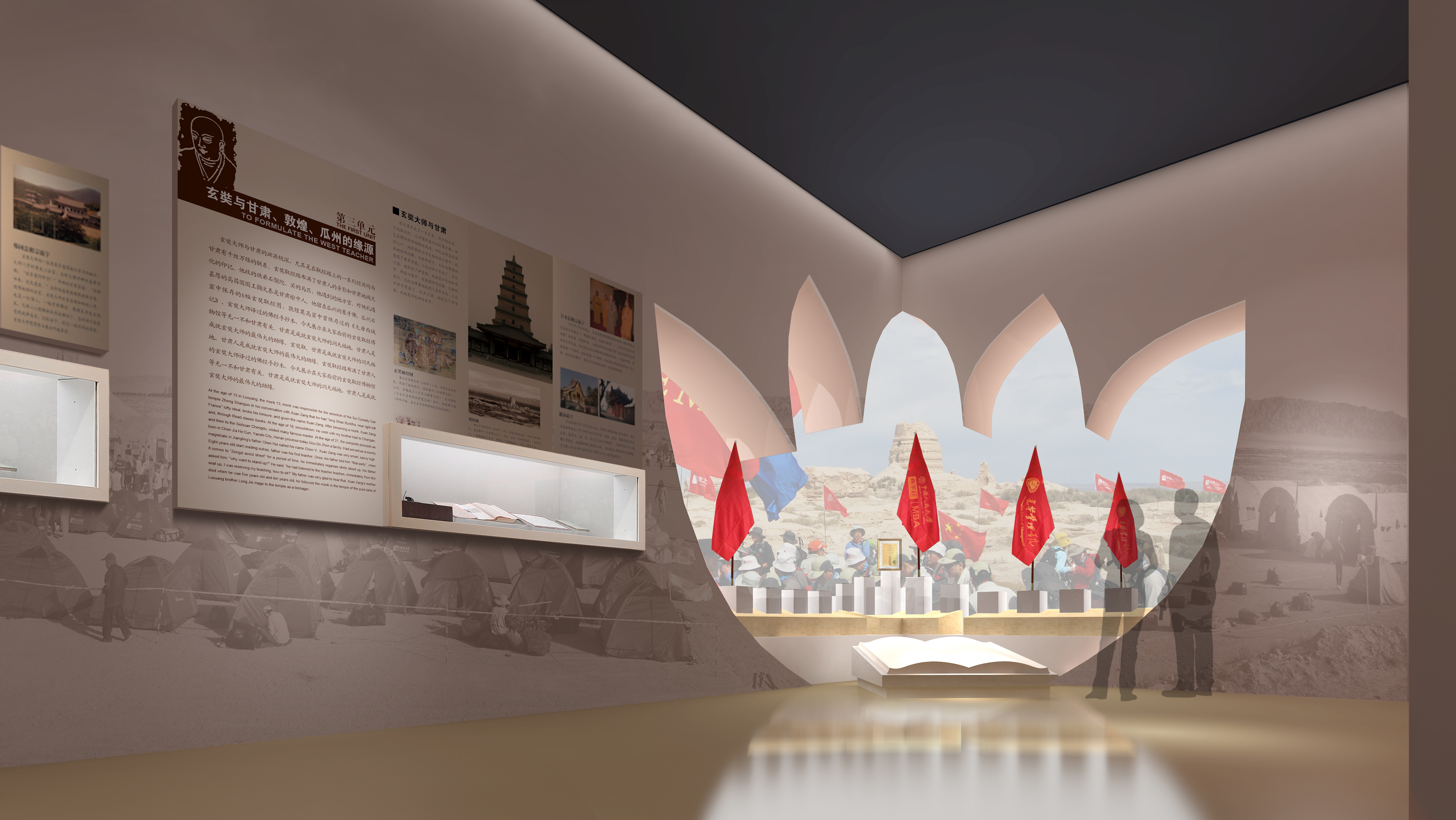 玄奘取經博物館以深刻揭示玄奘文化內涵,弘揚、宣傳、研究、展示、普及玄奘精神和瓜州歷史文化為主,設計上以合適的形式語言和空間氛圍來詮釋玄奘大師作為“民族脊梁”的精神高旨。