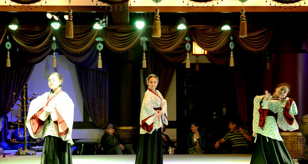 文化演藝是文化產業體系中極具創意性質和輻射拉動作用的的核心產業之一。《楚漢舞蹈》依托宿遷項王故里景區策劃運營,漢代乃禮儀之邦,楚漢時期的琵琶曲也為之盛名,舞蹈由十名女舞者身著漢代時期服裝,在琵琶古樂的背景下,運用民族舞漢代時期典型的風格特色,來尋求漢代禮儀之邦的文化場景。