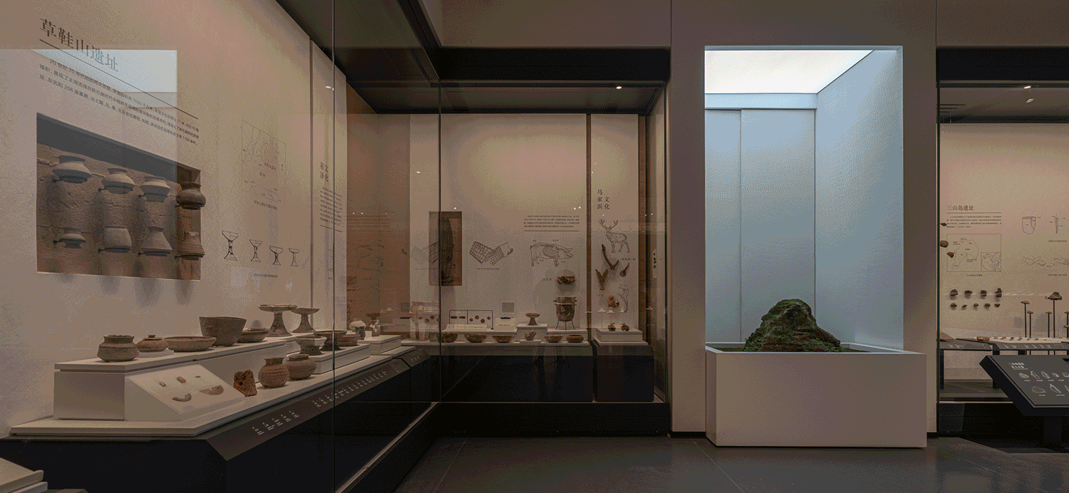 “考古探吳中”分為吳地生民、吳國春秋、大邦之爭三個單元,從考古學的角度解讀吳文化的源起、發展和特征。運用現代極簡美學手法將蘇式文化元素融入空間設計,營造出古樸素雅、恬淡寧靜的展陳氛圍。
