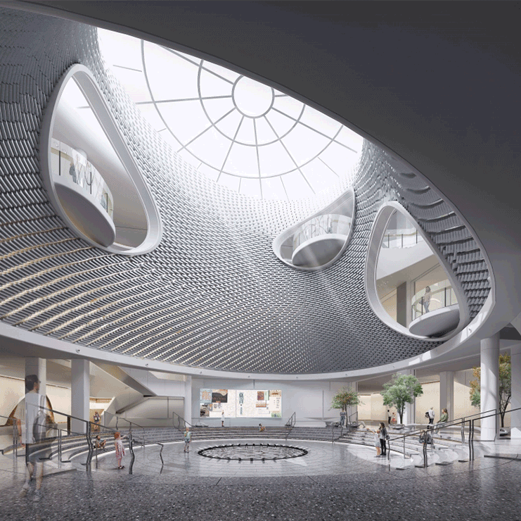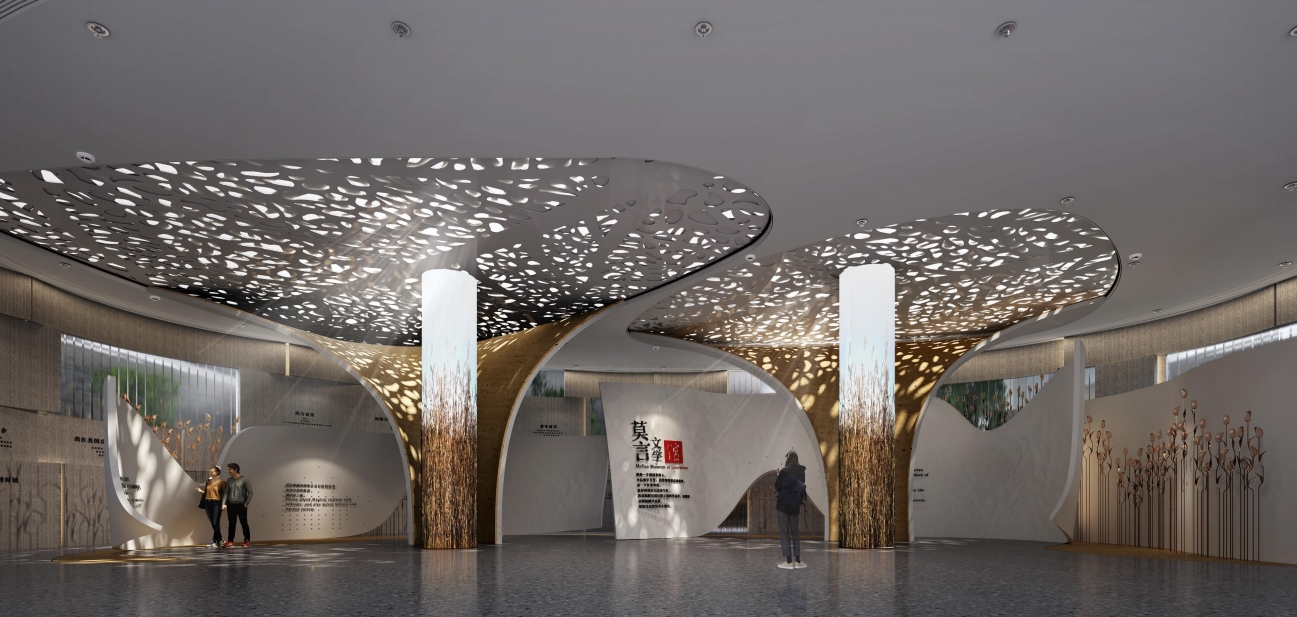 金螳螂文化設計團隊充分解讀建筑設計語言,依據建筑形態合理規劃展陳布局,充分利用中庭中空的建筑特點,依托莫言的文學特性,引入時間與光影的語言,為高密人民豎起新的精神地標,打造輻射全國、乃至世界文學界的人文殿堂。