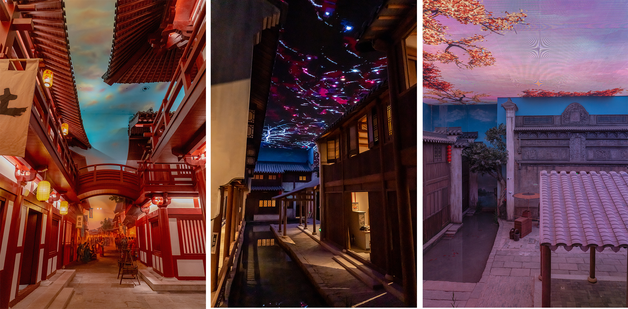 入口從船行至岸邊開始,由一條主街將不同時空的“街肆印象”進行串聯,以生動的視覺、觸覺、味覺、嗅覺、聽覺體驗,多維度給觀眾以深度沉浸式體驗。