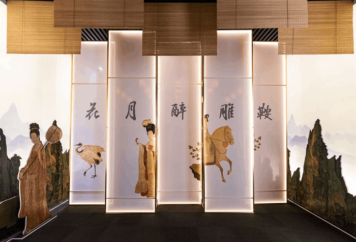 “唐風”裝飾的形式設計語言,在鮮明厚重的色彩氛圍中烘托出唐代藝術的輝煌成就。