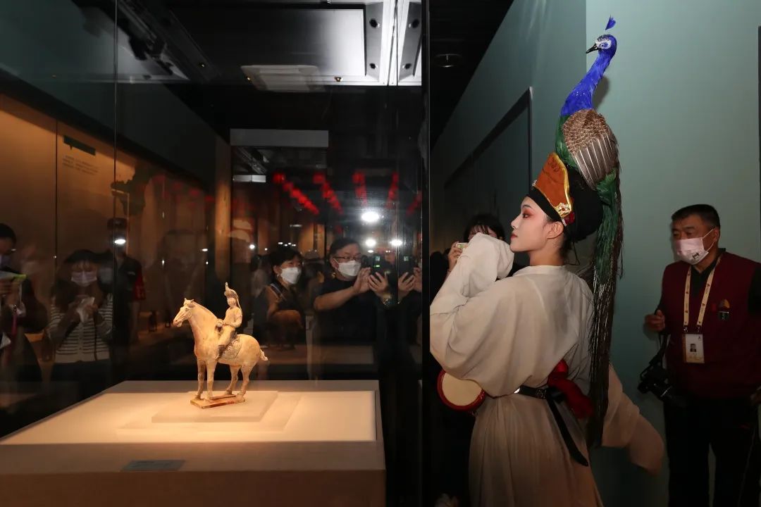 展覽共展出金鄉縣主墓出土的“金筐寶鈿”頭飾、騎馬俑、百戲俑等文物181件(組),展覽時間為2022年9月30日至2023年3月31日。