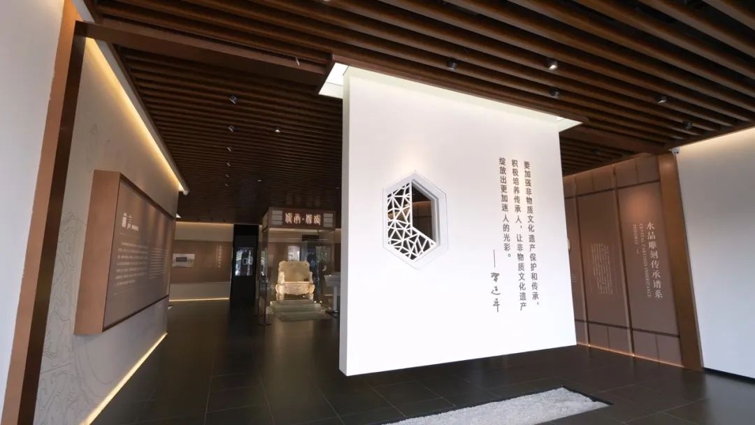 全國唯一一個(gè) 以國家級項(xiàng)目水晶雕刻為主題的展覽館 東海水晶雕刻非遺館順利開館! 在這里 全方位體驗(yàn)東海水晶雕刻的魅力 欣賞東海水晶雕刻藝術(shù)精品 解讀古今中外水晶文化的歷史演變 開啟一場水晶非遺傳承的研學(xué)之旅 (視頻號) 9月20日,東海水晶雕刻非遺館開館儀式暨2023“錫山·東海”優(yōu)秀非遺項(xiàng)目聯(lián)展舉行。國家文旅部原副部長、直屬機(jī)關(guān)黨委書記常克仁,連云港市副市長、東海縣委書記宋波共同為東海水晶雕刻非遺館揭牌。 東海水晶雕刻非遺館坐落于江蘇省連云港市中國水晶文化創(chuàng)意產(chǎn)業(yè)園,建筑面積4500余平方米,內(nèi)有藏品150余件。 △ 建筑外立面的實(shí)施中,金螳螂文化采用水晶的截面六邊形為元素,定制化設(shè)計(jì)了穿孔鋁板和燈具 2021年,東海水晶雕刻技藝入選國家級非物質(zhì)文化遺產(chǎn)保護(hù)名錄,標(biāo)志著東海縣非遺工作邁向嶄新的一步。 深入挖掘非遺水晶雕刻的文化內(nèi)涵,合理規(guī)劃展示內(nèi)容,金螳螂文化項(xiàng)目團(tuán)隊(duì)力求在展館空間內(nèi)全景呈現(xiàn)水晶雕刻作品之精美、雕刻技藝之精湛,展現(xiàn)非遺文化的傳承延續(xù)之脈絡(luò)。 △ 透過花窗,“傳承·保護(hù)”四個(gè)字映入眼簾,展現(xiàn)著非遺精神 進(jìn)入序廳,中心位置是展館之最“仿古水晶九龍椅”,之后是東海水晶雕刻傳承人譜系、水晶詩詞多媒體、水晶的形成與郯廬地震遺址等內(nèi)容展示。 晶彩歲月,傳承致遠(yuǎn)。U型投影幕與沙盤燈控相結(jié)合,展示中國古代時(shí)期各地出土的水晶器物和玉石雕刻的技藝的傳承。 地面的水晶沙盤和影片聯(lián)動(dòng),可以欣賞中國歷代各個(gè)時(shí)期出土的水晶地域分布,沉浸式感受水晶雕刻技藝及文化源流。 “天工·水晶的匠心綻放”展區(qū),以清光緒十七年李澄淵所繪《玉作圖》為浮雕背景,展示了古人對水晶雕刻經(jīng)驗(yàn)的長期積累并世代傳承。 中心桌上打造IP卡通人物模型古代水晶雕刻技藝十二圖技法展演,刻畫了雕琢匠人操作的場面并備注操作說明,可以通過VR眼鏡看到動(dòng)態(tài)的雕琢場景,體現(xiàn)講習(xí)互動(dòng)、展示體驗(yàn)等非遺傳承功能。 以多媒體《甲天下的東海水晶》、產(chǎn)業(yè)媒體觸摸柱、東海水晶雕刻發(fā)展之路榮譽(yù)墻、東海水晶雕刻工具沿革、東海水晶雕刻藝術(shù)精品等影視圖文和實(shí)物,充分展示水晶雕刻由小到大,從弱漸強(qiáng),由粗變精,形成了多種流派共同發(fā)展的格局,具有時(shí)代藝術(shù)價(jià)值。 在建設(shè)中更多地采用現(xiàn)代科技技術(shù),根據(jù)展廳的不同部分和不同展出內(nèi)容調(diào)配燈光,設(shè)置U型幕與沙盤燈控結(jié)合的展示形式,打造了IP卡通人物展示模型,電子模擬水晶雕刻操作流程等互動(dòng)體驗(yàn)設(shè)施。 在項(xiàng)目實(shí)施過程中,金螳螂文化各部門通力配合,保質(zhì)保量地完成項(xiàng)目完工節(jié)點(diǎn),得到了業(yè)主認(rèn)可并收獲了表揚(yáng)信和獎(jiǎng)牌。 東海水晶雕刻非遺館的開館,將進(jìn)一步擴(kuò)大東海水晶雕刻國家級非遺項(xiàng)目的影響力,為東海水晶雕刻項(xiàng)目的傳承弘揚(yáng)和文旅產(chǎn)業(yè)的持續(xù)發(fā)展提供強(qiáng)力支撐。 新聞素材來源:東海文旅、江蘇省非遺保護(hù)協(xié)會
