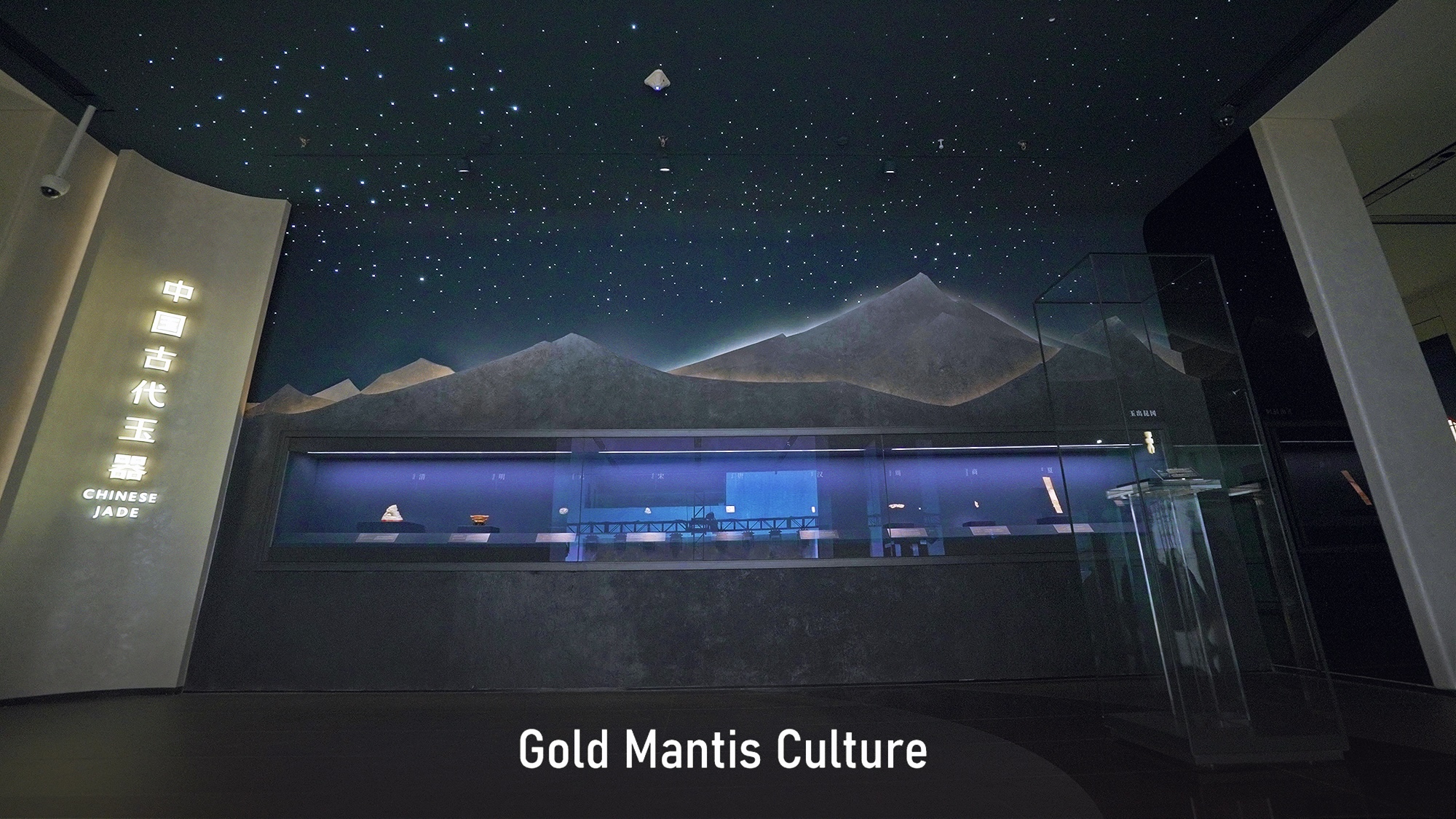 細節設計提煉玉器的造型、紋飾、質感、色彩等元素符號,通過照明層次設置、“玉”字墻裝置點綴、柜型變化等,全方位提升展示效果和品質。