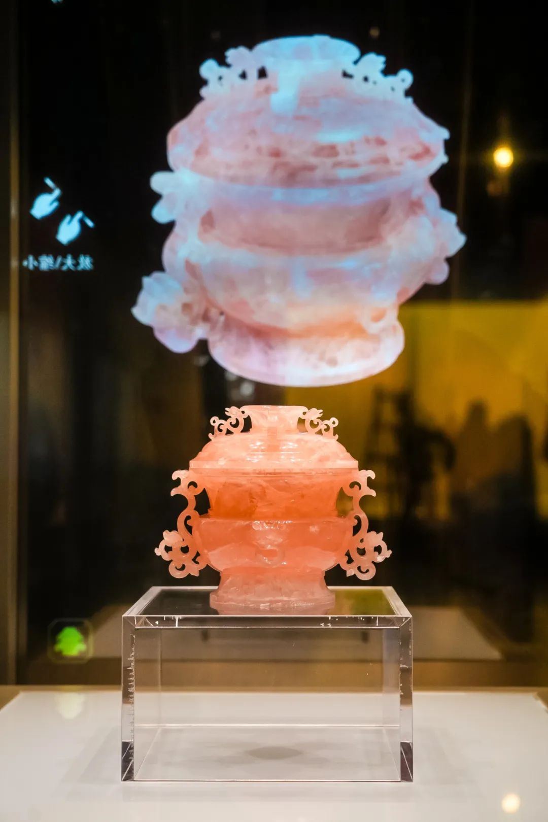 其中最惹眼的,當屬清乾隆芙蓉石蟠螭耳蓋爐,也就是乾隆最愛的“小粉爐”,吸引了眾多觀眾朋友前來打卡,一窺真容!